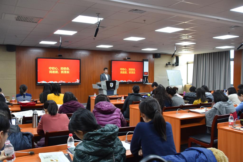 蔡鸿首先向全体教职工做了本学期学院主题教育成果专项汇报,并全面总结了学院在教学、教师发展、行政、科研、工会以及学生工作等方面的各项工作,赞扬了学院教师本学期所取得的可喜成绩和无私奉献精神,并在会上分享了我院援疆教师苏乐舟老师的新年寄语。