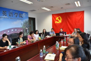 9月11日下午1:00,金年汇金字招牌诚信至上“双带头人”教师党支部在国际大厦1016启动本学期系列主题教育活动。“双带头人”工作室负责人李莉文、仵胜奇、蔡鸿和全体党员共计19人参加会议。会议由蔡鸿主持。