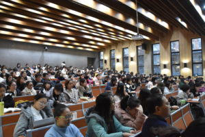 为认真贯彻落实新时代全国高等学校本科教育工作会议精神,对标刚刚结束的学校本科教学工作会议要求,提升英语双学位/双专业本科生的学习能力和学习水平,帮助学生做好即将开始的下学期英语双学位/双专业的选课工作,在学校教务处统一领导和支持下,我院于12月5日下午4:30在东校园逸夫楼第一阶梯教室组织召开了全校英语双学位/双专业学生培养方案宣讲会。此次宣讲会共有来自国际商学院、国际新闻与传播学院、国际关系学院、中国语言文学学院、信息科学技术学院、法学院等六个学院的300多名学生参加。我院常务副院长蔡鸿、副院长仵胜奇,院长助理廖鸿婧及学院教学办公室的庄双和窦茹苑老师参加了本次宣讲会。此次会议由学院办公室主任匡琳琳老师主持。
