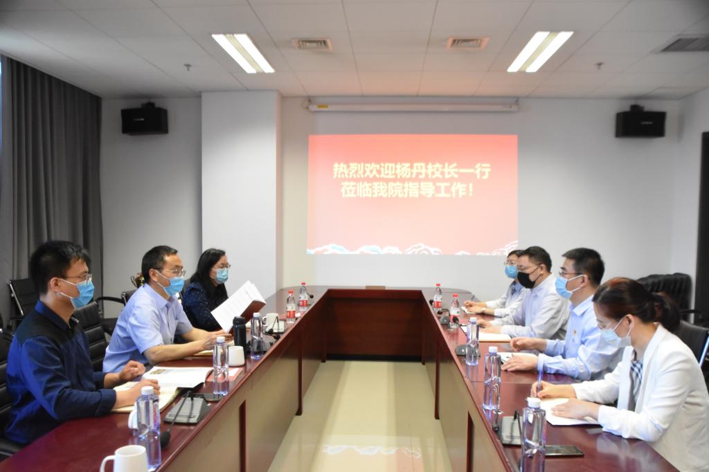 5月20日上午,学校党委副书记、校长杨丹,教务处处长李莉文,党校办陈小龙一行莅临我院进行调研工作。调研会在我院1016会议室召开。学院党总支书记兼院长蔡鸿、副院长仵胜奇、教师代表张东英以及办公室相关老师参加了会议。会议由蔡鸿主持。