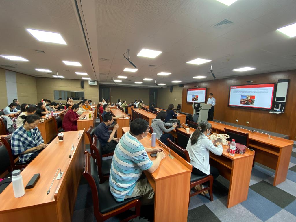 蔡鸿在大会上和与会教师分享了一线专英教师恪尽职守、甘当老黄牛的一个个感人事例,高度赞扬教研室主任、课型组长、以及每一位任课教师兢兢业业、一丝不苟的工作态度,并对克服重重困难,坚守岗位,服务集体的教师表示深深的感激和敬意。学院表彰了本学期为学院党建、教学、科研、行政工作等各个方面做出突出贡献的个人。最后,全体与会教师观看了由学院教师和民族预科班学生共同参加“青春向党”合唱比赛的视频歌曲《十送红军》,再次被我党光辉的历史和我院师生团结一心、奋发向上的精神所鼓舞和感动。