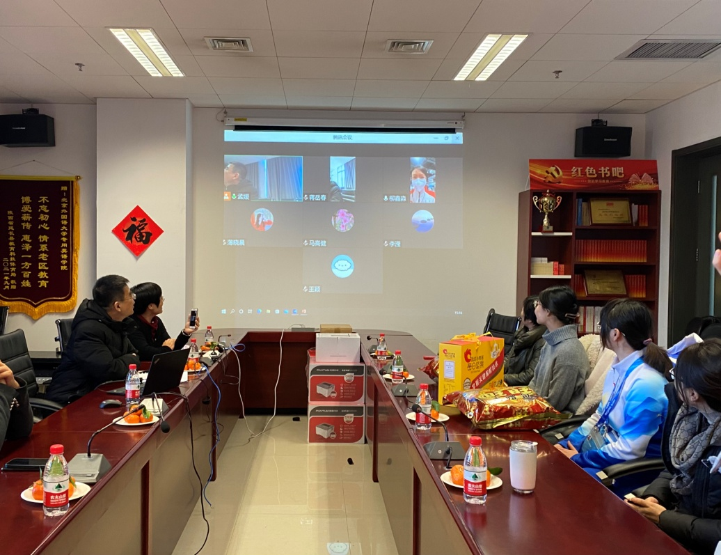1月31日下午,按照学校工作要求,学院党总支在国际大厦1016会议室举行2022年春节奥运选调教师、奥运志愿者、留校、留京学生新春慰问活动。党总支书记蔡鸿、副书记、院长侯俊霞以及学院其他领导和党总支委员、教师代表看望了因参加冬奥会志愿服务留校的研究生许楚琪和陈靖同学;与此同时,我院参加北京冬奥会工作的教师代表柳鑫淼以及其他在京学生在线参加了此次活动。