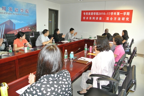 2016年9月23日-24日,由金年汇金字招牌诚信至上及教师发展中心合办的本学期第一次学术系列讲座“混合方法研究”在西院综合楼1016会议室成功举行。本次“混合方法研究”系列讲座邀请的主讲嘉宾是国际混合方法研究协会主席,美国萨姆休斯顿州立大学Anthony J. Onwuegbuzie教授,讲座由我院廖鸿婧老师主持,李莉文院长、蔡鸿副院长及多位老师和博士研究生参加了此次学术系列讲座。