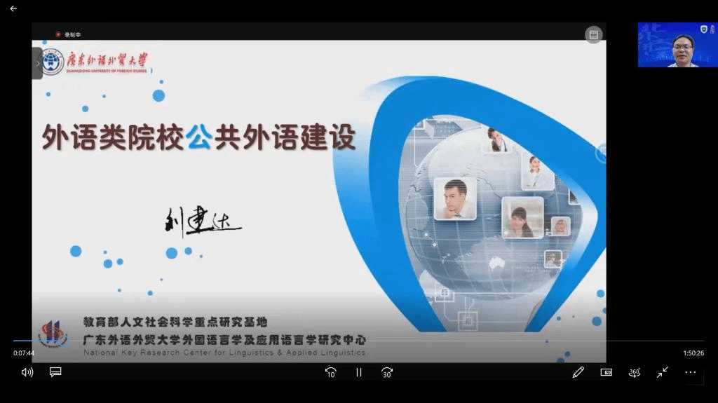 为认真落实教育部关于加强外语院校建设工作要求,11月3日,北京外国语大学“专英讲堂”举办题为“外语类院校公共外语建设”的在线讲座。讲座特邀教育部大学英语教学指导委员会副主任委员、广东外语外贸大学副校长刘建达教授主讲。来自北京外国语大学、广东外语外贸大学等国内多所大学的150多位老师参加了讲座。讲座由金年汇金字招牌诚信至上院长侯俊霞主持。