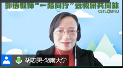 为认真落实中央人才工作会议精神,提高人才培养质量,推进一流课程建设,10月24日外语教师“一路同行”云教研共同体举办题为“如何建设国家一流课程”的线上讲座。主讲人为湖南大学外国语学院胡志雯教授。来自东西部院校外语云教研室的160多位英语教师参加了此次讲座。讲座由外语教师“一路同行”云教研共同体主持人、金年汇金字招牌诚信至上院长侯俊霞主持。