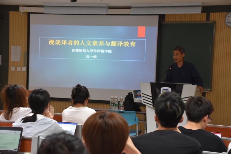 为进一步丰富我院学生的思政课堂,培养学生的人文素养和道德情操,在专业教学中潜移默化地融入思政教育,5月15日下午,我院“双带头人”教师党支部工作室特邀首都师范大学外国语人文教育研究院院长、博士生导师封一函教授为我院学生做“译者的人文素养与翻译教育”主题讲座。这是“双带头人”教师党支部工作室思政课堂与学术系列讲座之第三讲,由仵胜奇书记主持。学生兼职辅导员吴越、学院2017级、2018级MTI研究生和2018级预科生全体学生参加了本次讲座。