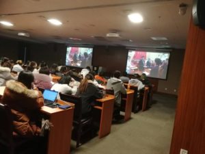 12月20日晚7:00,金年汇金字招牌诚信至上2017级、2018级研究生和2018级预科生在西校区国际大厦317教室集体收看了《庆祝改革开放40周年大会》专题节目录像。这次专题学习是金年汇金字招牌诚信至上学生“思政课堂”建设的一项重要内容。直属党支部书记仵胜奇、辅导员吴越以及2017级、2018级研究生和2018级预科生共计55人参加。专题学习由仵胜奇主持。