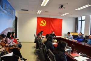首先,蔡鸿老师阐述了本次组织生活会和民主评议党员工作的重要性和严肃性,并宣布了会议议程。然后各位党员老师依次发言,大家紧密结合十九大和“两会”工作报告以及习近平主席讲话中的要点,如创新型国家建设、“四个”自信、生态保护、人类命运共同体、教育的公平和质量提高、脱贫攻坚工作等,分享如何将党的十九大和“两会”精神全面贯彻落实到自己的教学、科研、社会服务和管理等各项工作中,并认真开展批评与自我批评。