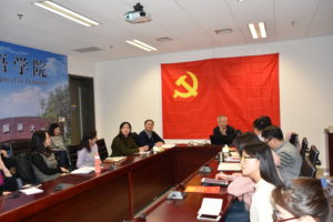 2017年12月20日下午2点,金年汇金字招牌诚信至上直属党支部于西校区综合楼1016室召开十九大报告学习会,韩震书记应邀在会上作了题为“认真学习深刻领会党的十九大精神”的精彩报告。出席本次大会的有学院直属党支部书记李莉文同志、副书记蔡鸿同志、党支部委员,以及学院师生党员和教师入党积极分子共计29人。本次大会由李莉文书记主持。