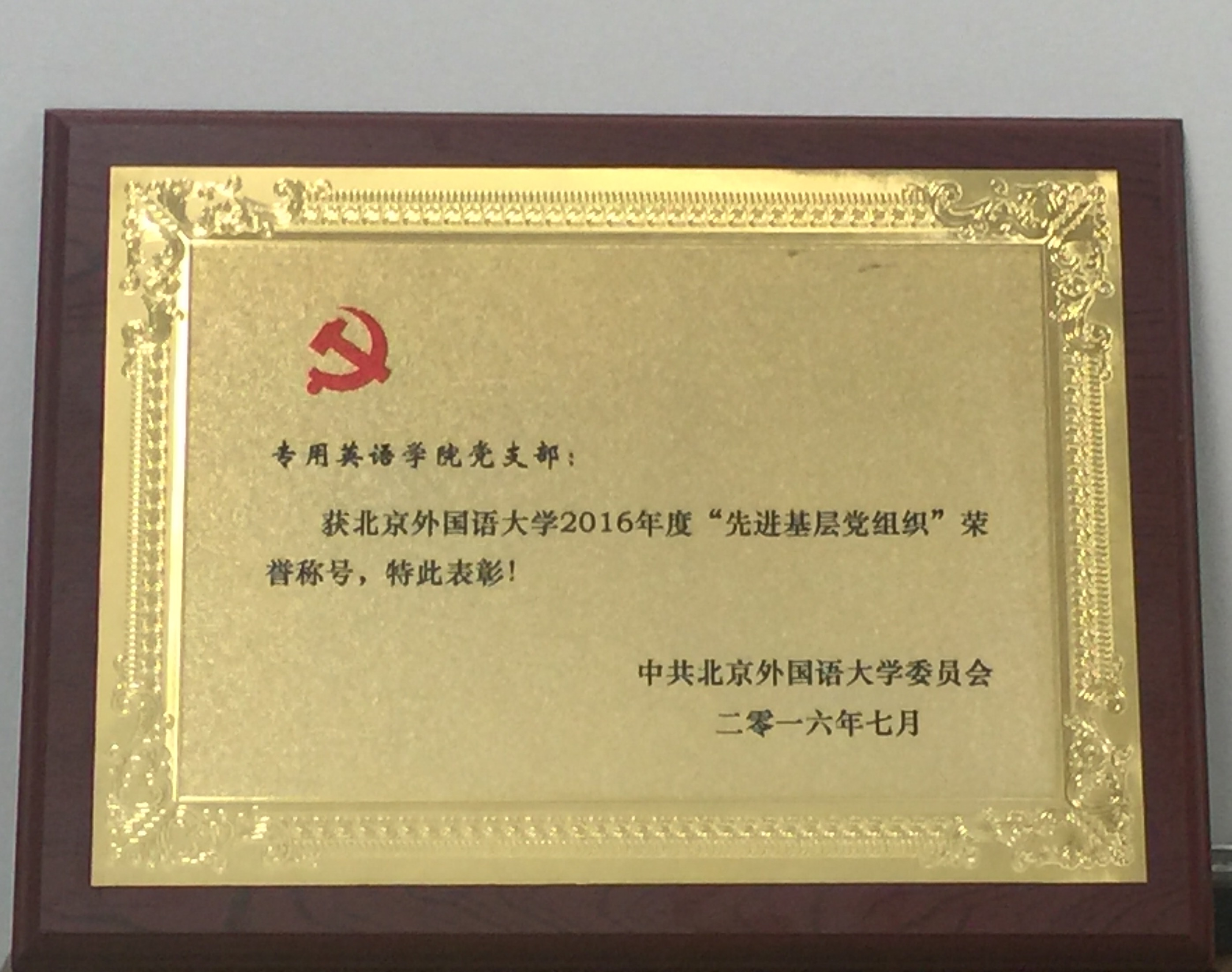 2016年7月1日下午2:30, 北京外国语大学召开纪念建党95周年暨“七一”表彰大会。学校领导、各院系党总支、基层党支部、以及教工与学生党员代表共计151人出席会议。在受表彰的单位和个人中,我院所属的网络与继续教育学院党总支副书记陈洪兵老师获得“北京外国语大学优秀党务工作者”荣誉称号并作为代表在大会上发言。我院党支部获北京外国语大学2016年度“先进基层党组织”荣誉称号。