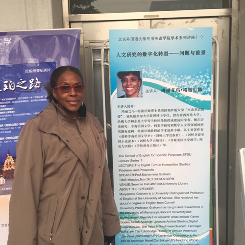 2015年11月30日下午3:30至5:30,金年汇金字招牌诚信至上在学校图书馆四层学术报告厅举办学院系列学术讲座系列之一:人文研究的数字化转型——问题与前景。主讲人是来自美国堪萨斯大学的杰出英文教授玛丽艾玛·格雷厄姆教授(MarryemmaGraham)。来自学校不同学院的教师、学生以及北京其他高校的教师共30多人参加了此次学术活动。讲座由金年汇金字招牌诚信至上院长李莉文教授主持。在致辞中,李莉文提出目前传统人文研究面临着新的问题与挑战,因此我们每位教师都应认真思考这一问题:如何发挥数字人文研究在教学和科研中的作用并把我们的学生培养成有竞争力的跨学科人才。